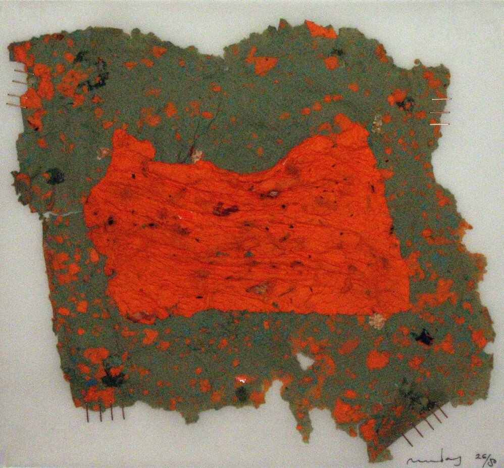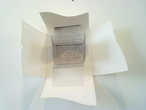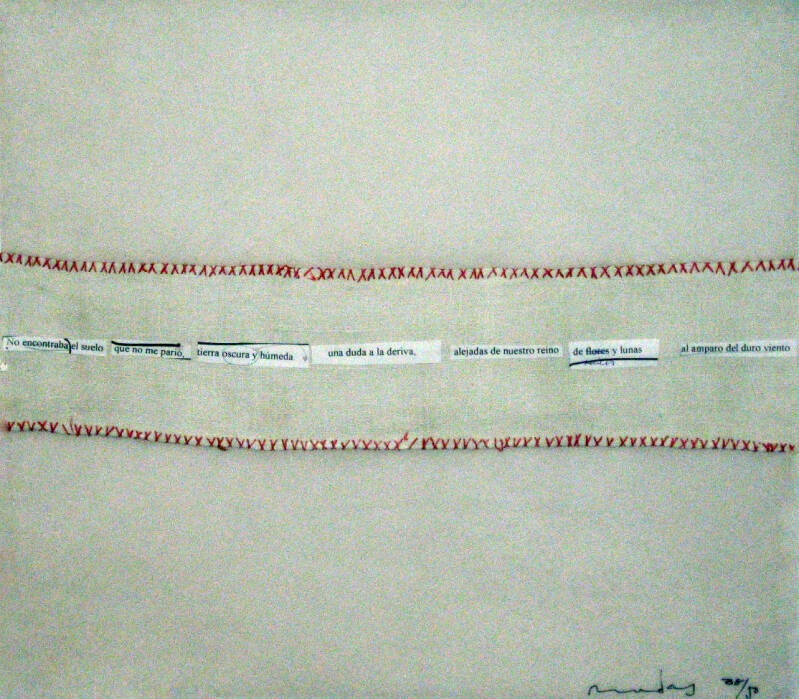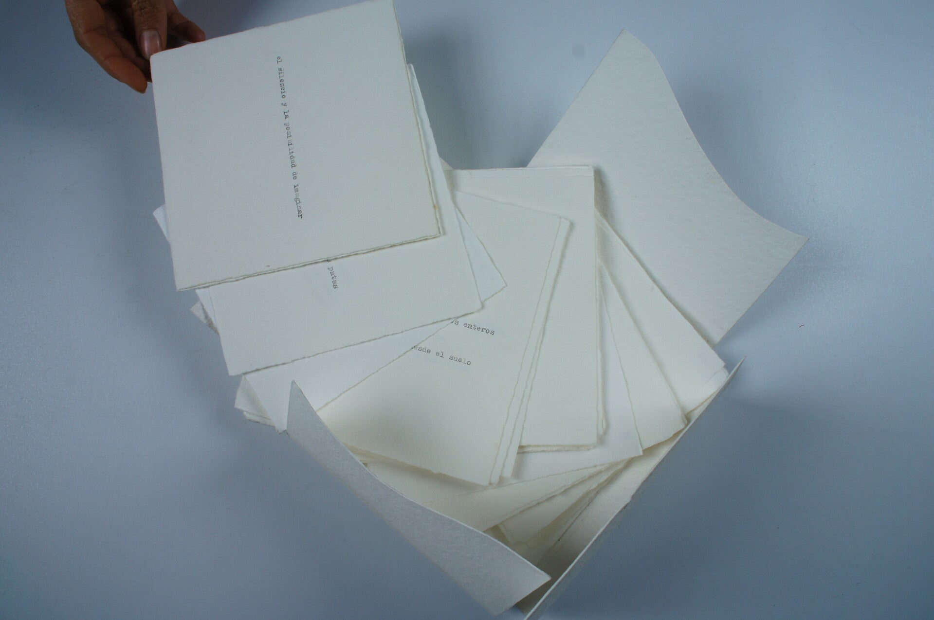 Una serie de materiales personales (papeles reciclados manufacturados, fotos impresas sobre textil, poemas de la obra Mudar mezclados de un modo automático) sirven para la construcción collages y paisajes interiores que en sí mismos crean un libro, un libro disperso e imposible.